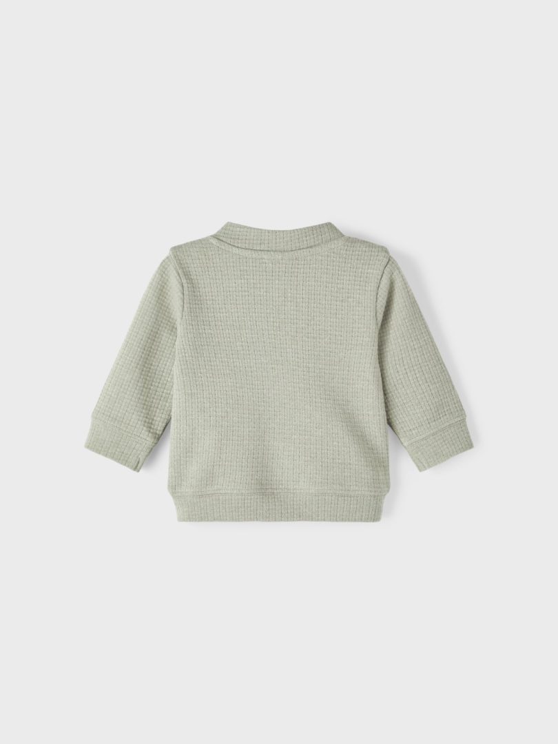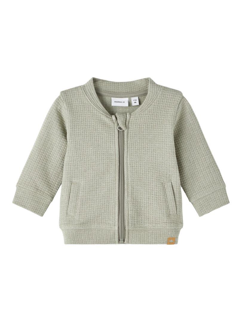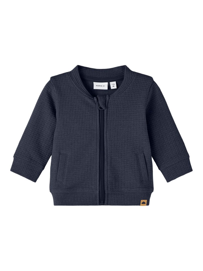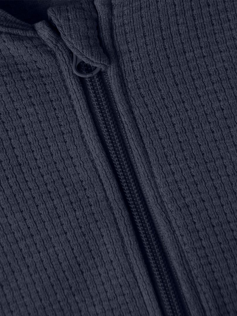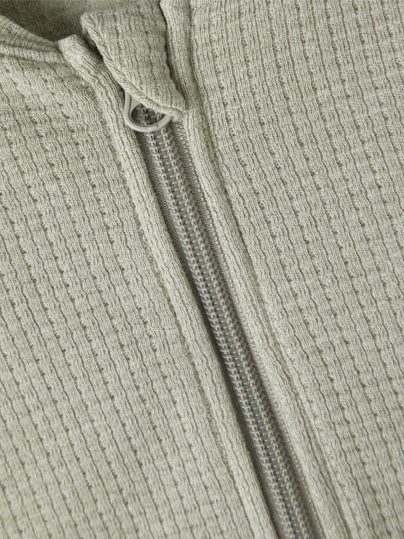 Knallfin genser med glidelås i litt tynt «vaffelstoff». Genserne er i en delikat mørkeblå farge eller en lekker støvet grønnfarge. Fin å kombinere sammen med tilhørende bukse.