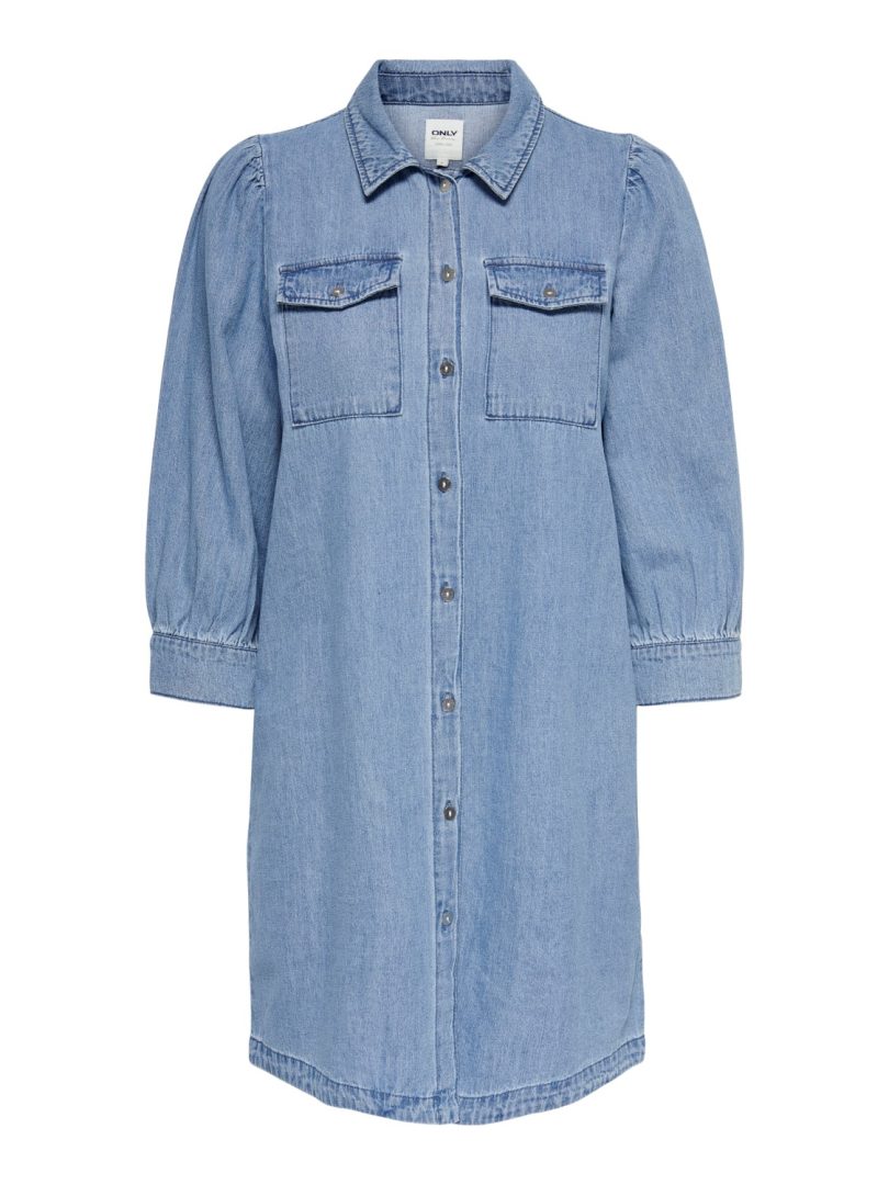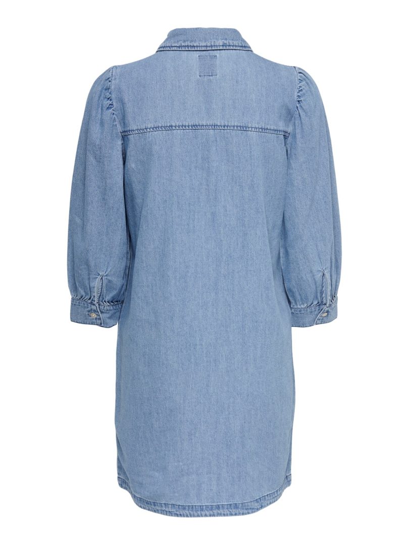 Myk og god kjole i dongeri med en liten puff arm.