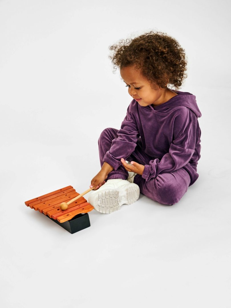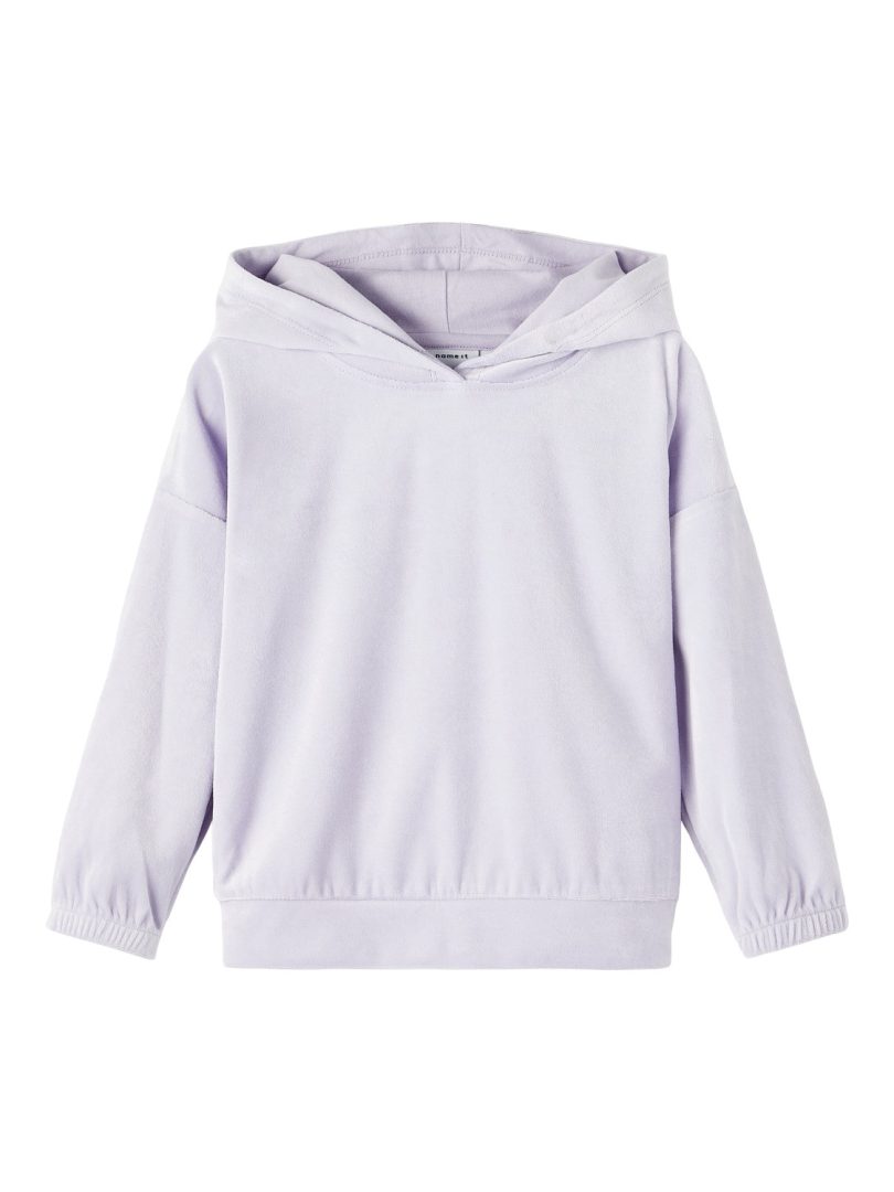 Myk og behagelig hettegenser i velour til de minste jentene. Fås i lys lilla og i en mørkere lillafarge.