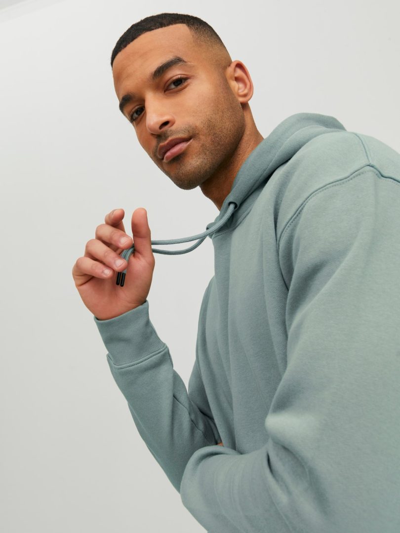 Klassisk, enkel og fin hettegenser til herre, med hel lomme i front.