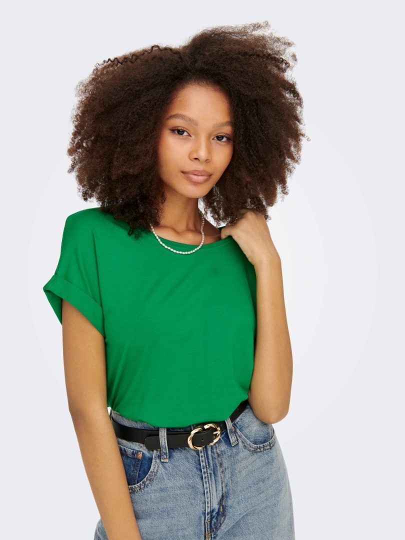 En luftig og myk t-skjorte med korte ermer og med oppbrettede mansjetter.