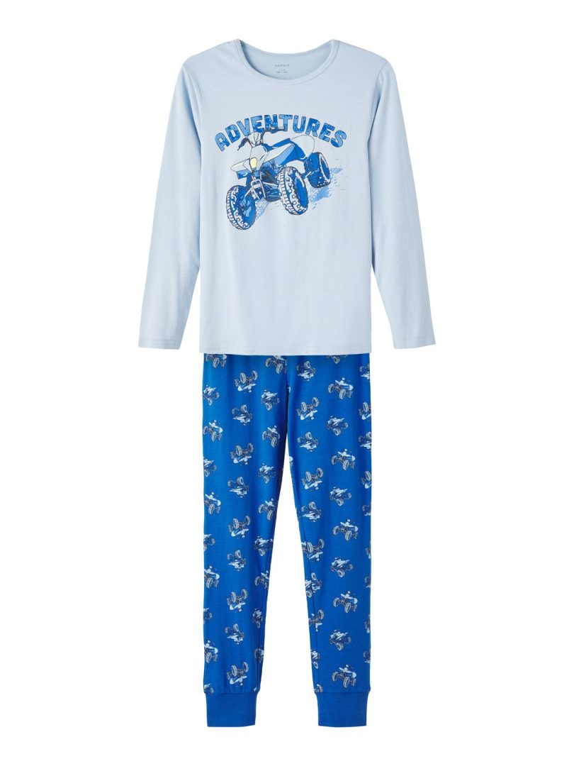 Todelt nattøysett med stilig ATV-motiv, i elastisk jersey stoff med en myk overflate og innside for en behagelig følelse og bevegelsesfrihet. Buksa har elastisk midje.