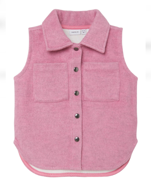 SUPERKUL vest til de minste jentene. Lekre detaljer med krage og to brystlommer. Mykt og behagelig stoff. Style den gjerne med en tøff genser, jeans og boots for et kult uttrykk. Eller ha den over en kjole for et søtere antrekk.